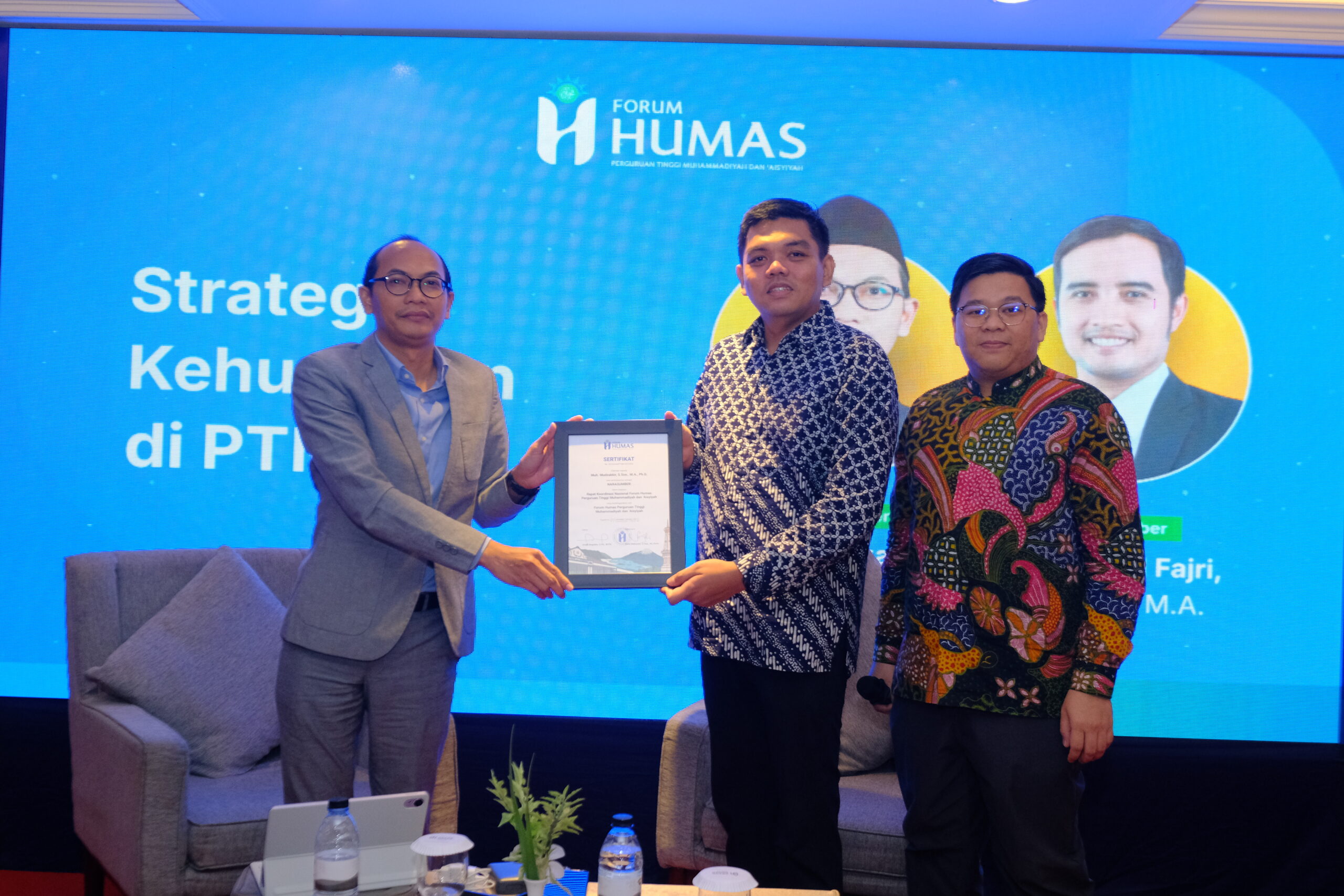 Pada hari pertama, Rakornas dibuka dengan Sesi I bertema “Strategi Kehumasan di PTMA” yang menekankan bahwa fungsi humas tidak lagi sebatas menyebarkan informasi kegiatan, tetapi menjadi garda depan penjaga identitas dan reputasi perguruan tinggi. Humas PTMA dipandang berperan dalam menjaga konsistensi citra kampus, membangun kepercayaan publik, sekaligus mengelola potensi krisis komunikasi di ruang digital.